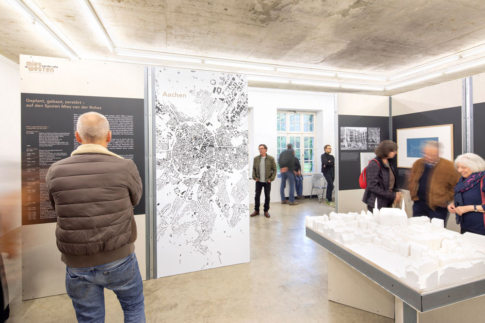 Ein sozialistisches Volkshaus in Aachen, die avantgardistischen Bauideen in Krefeld oder die spektakuläre Krupp-Firmenzentrale in Essen: Die Ausstellung „Mies im Westen“ zeigt von 11. Oktober bis 14. November im Landeshaus des LVR Projekte und Bauten des Architekten Ludwig Mies van der Rohe in Nordrhein-Westfalen. Die Reihe ist eine Koproduktion des Museums für Architektur und Ingenieurkunst NRW, der TH Köln, der TH Mittelhessen und der Alanus Hochschule für Kunst und Gesellschaft.