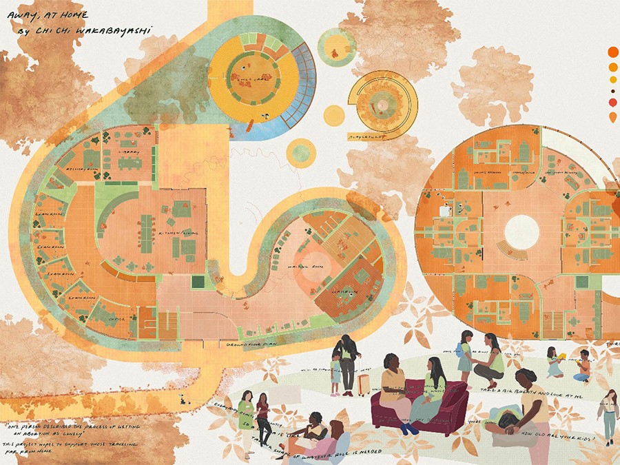 Installed at Columbia GSAPP from March 29 - April 16, 2024, the exhibition features the student research and design work investigating how the intersecting and compounding factors of race, class, and gender impact an individual’s access to care, and offer speculative design proposals for facilities, systems, and networks enabling reproductive care access. Expanding beyond the studios’ work, the exhibition aims to foster a dialogue among designers, health care providers, advocates, and students to explore how practitioners of the built environment can respond to and support reproductive justice in the US.