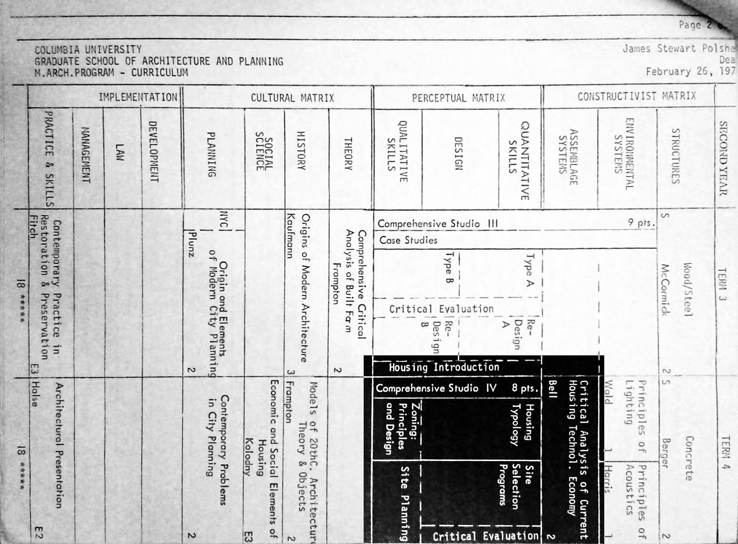 In response to student requests and to the coordinated interests of new faculty a series of experiments that took housing as a theme began at GSAPP in 1974, as the school was shifting from a four year undergraduate program to its current three year graduate program. By 1976 the housing studio had emerged as a permanent feature of the school’s studio sequences, with its position as the required fall studio of the second year and its student team approach stabilized. Drawing on school publications, university archives, course bulletin depositories and interviews with faculty and students the exhibition tracks the emergence and transformation of housing at GSAPP, as a pedagogical device, and as a topic that reflects the evolution of collective habitation as a social, formal, technical and political site of inquiry for the school.