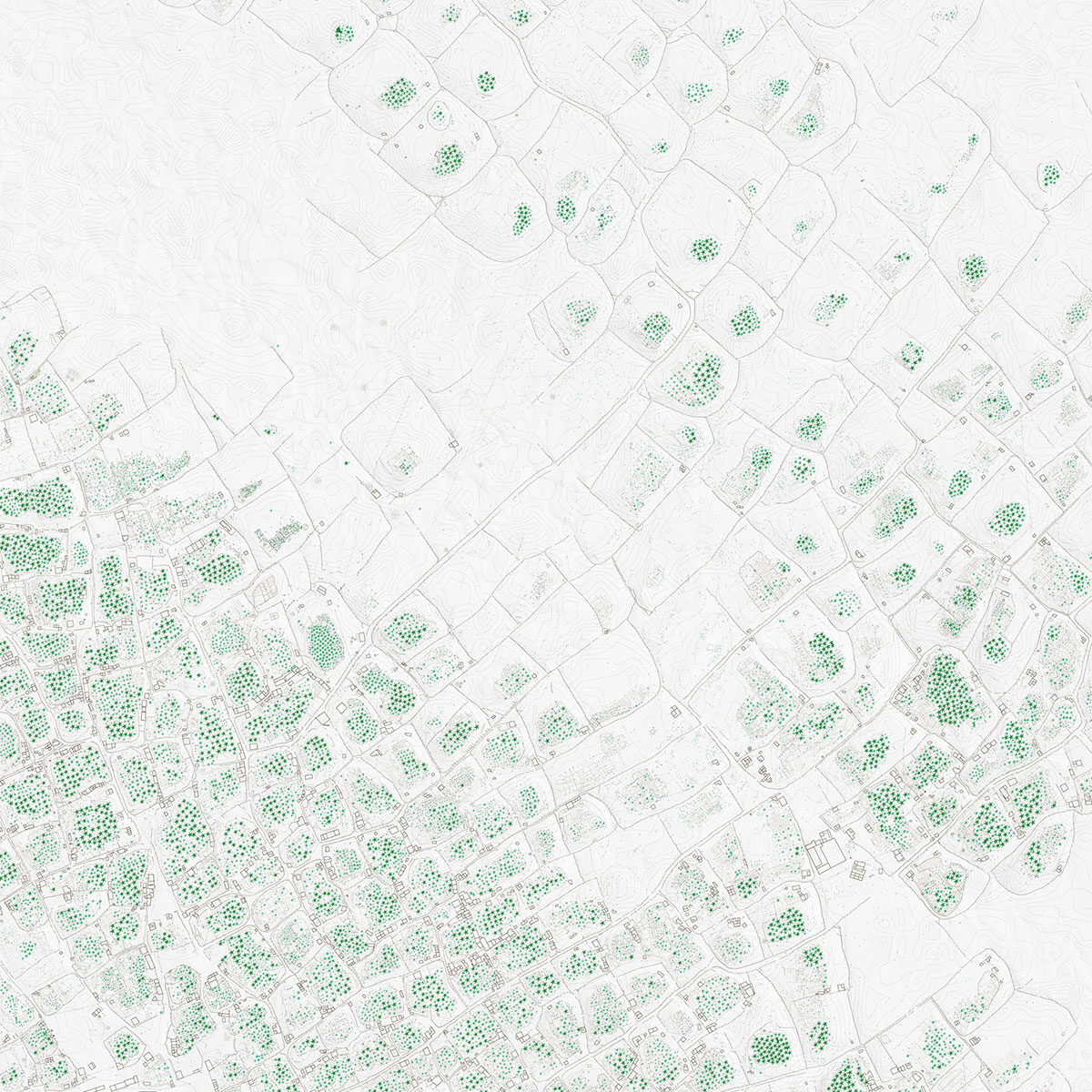 The Oasis Loop presents seven vernacular oases of the Maghreb region in North Africa at the intersection of their geomorphological and technological causes. On the one hand, there are the tectonic and climatic processes that give shape to the arid lands that host them. On the other, it shows the multitude of infrastructural and agronomic techniques – many of which can be traced a thousand years back through Islamic traditions of agroecology – aimed at increasing vegetation cover through water harvesting and topsoil conservation. Oases resist and even reverse the entropic tendency of desertic lands through the entanglement of water, vegetation, and soil in a positive feedback loop where the greater abundance of each element necessarily implies a higher presence of the others.